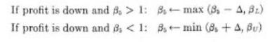 If profit is up and ß 5 □ 1: minß 5 ← δ, ß U If profit is up and ß 5 □ 1: minß 5 ← ;4, ß L