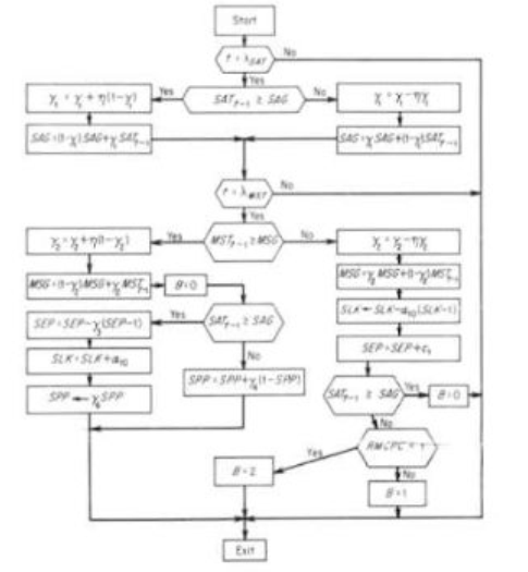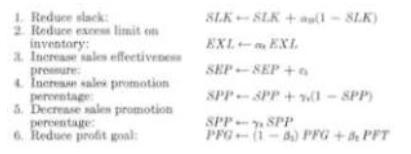 The program first updates sales and market share goals and the learning parameters associated with them. If a goal is exceeded, the goal is raised, the weight attached to successful performance is increased, and the weight attached to unsuccessful performance is decreased. If a goal is not achieved, the goal is reduced, the weight attached to successful performance is decreased, and the weight given to unsuccessful performance is increased.