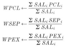 Each of the weighted averages in this function uses actual sales level for the previous time period ( SAL ) for each firm as the weighting factor.