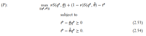The harder participation constraint is obviously that of the least efficient type, namely (2.54). Hence, the optimal solution is characterized by