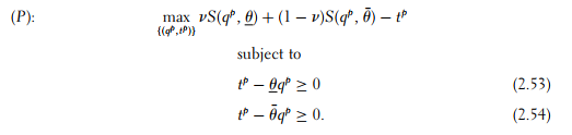 The harder participation constraint is obviously that of the least efficient type, namely (2.54). Hence, the optimal solution is characterized by
