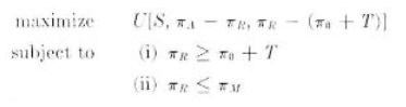 By hypothesis, the minimum profit constraint is ineffective but the maximum profit constraint may be encountered. When this occurs, π R = π M and this can be handled by substituting π M for π R in the objective function. The problem then is reduced to