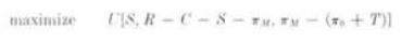 By hypothesis, the minimum profit constraint is ineffective but the maximum profit constraint may be encountered. When this occurs, π R = π M and this can be handled by substituting π M for π R in the objective function. The problem then is reduced to