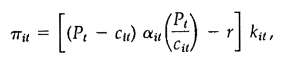 this determines Pt and q for the short-run period. The above assumptions concerning h(·) and the ait(·) guarantee that such a short-run equilibrium always exists. Net profit for firm i is