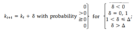 kt+1 = kt + δ, with δ having same distributional characteristics as above, with Δ = kt;