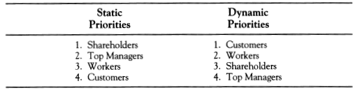 The first priority of hypercompetitive firms is superior stakeholder satisfaction. Disruption is a result of finding new ways to satisfy existing customers or better satisfying new customers by entering new markets. The prioritiza-tion of stakeholders in less hostile, static environments was usually shareholders first, employees second, and customers last. In recent years hypercompetitive firms have turned this prioritization on its head, as indicated by Figure 8-5.