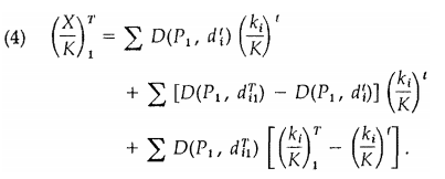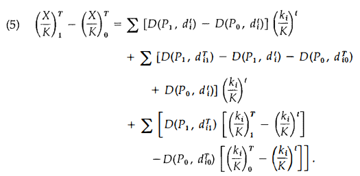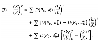 The superscripts T and t identify the time at which the variables are measured. The subscript zero has been used to tag variables that may be different at time T under regime zero than under regime one. Given this notation, the first term is, of course, (X/K)t. The second term accounts for the effects of the evolution of rules between t and T, weighted by capital stocks initially (at time t). The final term ac-counts for selection effects that change capital share weights on the final rules.