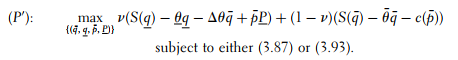 Another important remark should be made at this point: there is no need to audit an agent claiming that he is efficient, because the inefficient type’s incentive constraint (3.86) is slack anyway and auditing is costly. Hence, we necessarily have p = 0 at the optimum. Similarly, the value of P¯ is irrelevant when (3.86) holds strictly.