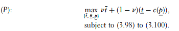 As usual, we conjecture that only the upward incentive constraint (3.85) and the least efficient type’s participation constraint (3.92) are relevant.