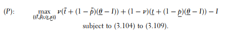 We leave it to the reader to check that (3.104) and (3.109) are the only two constraints that are binding at the optimum. Hence, we obtain the following values of the first-period payments: