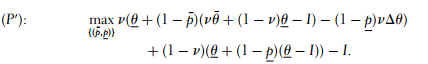 . Inserting these expressions into the principal’s objective function yields a reduced program that depends only on the probabilities of refinancing p¯ and p: