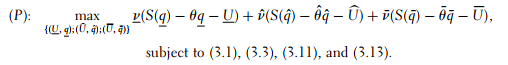 If the profile of production levels obtained strictly satisfies the monotonicity conditions (3.11), all of the other incentive constraints also hold strictly. If not, some bunching emerges, as described in the second part of proposition 3.1. Bunch- ing now arises from the conflict between the desire of the principal to implement a schedule of outputs, which is increasing over an interval when only upward incen- tive constraints are taken into account, namely qˆ < q¯, and the implementability condition, which requires the opposite monotonicity, namely qˆ ≥ q¯. Indeed, when vˆ is rather small and v is rather large, the information rent of the θˆ-type is not too costly for the principal but that of a θ-type is much more. Reducing those informa- tion rents calls for strongly reducing qˆ, but a reduction in q¯ is much less necessary. In this case, the implementability condition limits the ability of the principal to reduce the agent’s information rent and bunching emerges.