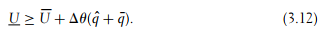 Second, the incentive constraints (3.1) to (3.6) also imply some imple- mentability conditions on the schedule of outputs. Indeed, adding the incentive constraints for two adjacent types yields q ≥ qˆ (use (3.1) and (3.4)) and qˆ ≥ q¯ (use (3.3) and (3.5)). Therefore, we get the monotonicity constraints