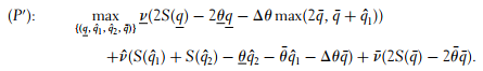 Let us first assume that the solution is such that q¯ ≤ qˆ1. In this case, max(2q¯, qˆ1 + q¯) = qˆ1 + q¯ and optimizing (P’) yields the following second-best outputs:
