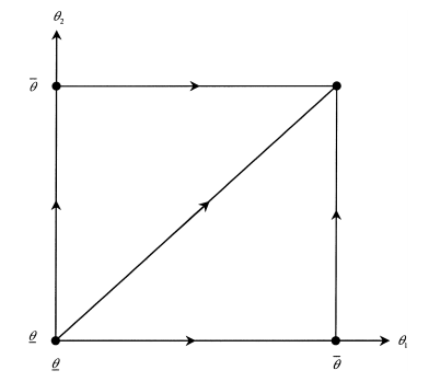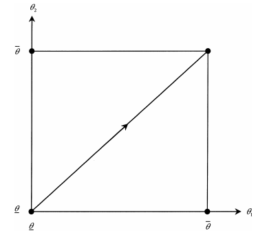 If we had perfect correlation, vˆ = 0, the binding incentive constraint would obvi- ously be from (θ, θ) to (θ¯, θ¯), as shown in figure 3.4. Then we would be back to the usual unidimensional model along the diagonal.