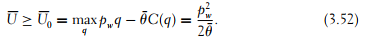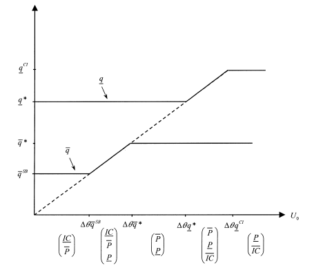 Figure 3.9 summarizes the profiles of production levels as functions of the efficient type’s outside opportunity utility level U0. For U0 higher than