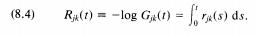 Solving this differential equation (with initial condition Gj(0) = I) gives the integrated hazard function:
