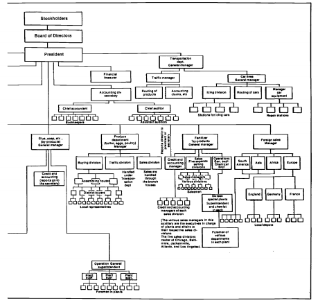 During the 1890s, the meat packers had created as complex an organiza- tional structure as those earlier developed by railroad systems. Yet their top management paid little attention to systematic long-term planning and investment decisions. One reason was that such decisions continued to be made by a small number of top executives who spent nearly all their time in day-to-day activities.