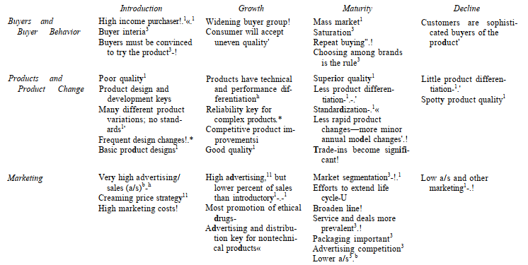 FIGURE 8-2 Predictions of Product Life Cycle Theories About Strategy, Competition, and Performance