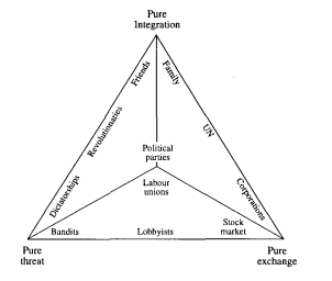 Figure 3.2 Combination of threat, exchange and integration in society (from Boulding 1978).