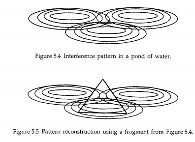 The pattern holds all information concerning the position of the dropped stones. A fragment of the pattern is sufficient to reconstruct the whole wave system (see Figure 5.5).