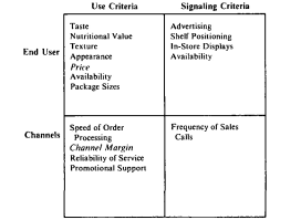 Often signaling criteria can be quite subtle. For example, the paint job on a medical instrument may have an important impact on the buyer’s perception of its quality even though the paint job has little or no impact on the instrument’s performance. Similarly, Arm & Hammer’s brand extension into detergents has been perceived as differentiated in part because a box of it is heavier than competitors’ products even though it yields the same number of washes.
