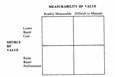 The distinctions among use and signaling criteria are often complex, since many of a firm’s activities contribute to meeting use criteria as well as serve as signals of value. A polished sales force, for example, may both signal value and be a valuable source of applications knowledge that will lower the buyer’s cost. Similarly, brand reputation may be valuable to a buyer because it removes any blame if a supplier does not perform (“How can you blame me for selecting IBM?”). Despite such situations, however, it is vital to separate use and signaling criteria and the firm’s activities that contribute to both, since only use criteria represent true sources of buyer value. Buyers do not pay for signals of value per se. A firm must understand how well it meets use criteria and the value created in order to determine an appropriate price premium. The value of meeting signaling criteria is measured differently. The value of a signaling criterion is how much it contributes to the buyer perceiving the value created in meeting use criteria.