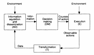 - Decide: The decide-function chooses from the repertoire of possible alternatives for action in order to influence the situation towards that which is sought.