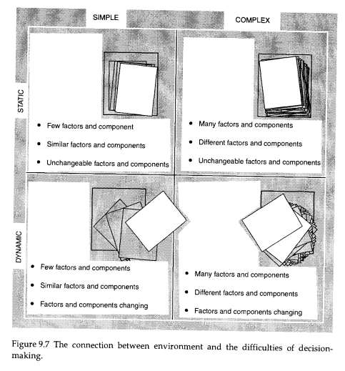 The connection between the existing environment and the difficulties of decision-making is shown in Figure 9.7. It is evident that the problems existing in the right and lowest part of the matrix is most dependent of a good decision support.