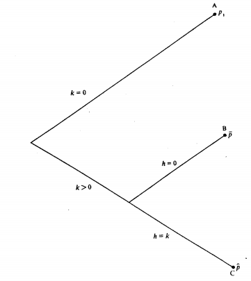 The technologies and contractual options discussed above are displayed sche- matically in Figure 7-2. If pˆ < p1 < p‾, then the relevant nodes are A and C: e uyer will either ask the supplier to employ the general purpose techno ogy an will pay p, upon delivery of product for which orders are’con-