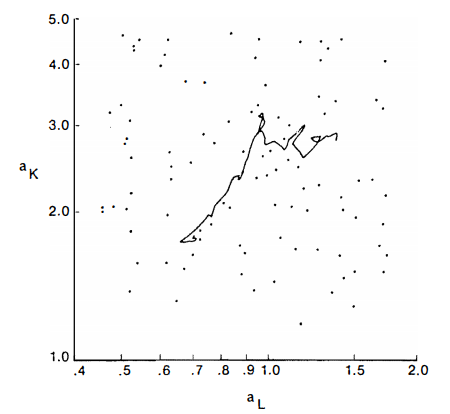 An evolutionary model of economic growth must be able to explain the patterns of aggregate outputs, inputs, and factor prices that neo­ classical theory “explains .” In the exercise here, the standard of ref­ erence is provided by Robert Solow’ s classic article “Technical Change and the Aggregate Production Function” (Solow, 1957) . The