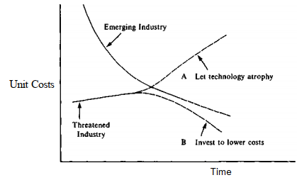 Emerging industries usually face limits or problems, of varying severity, in getting the industry off the ground. These stem from the newness of the industry, its dependence for growth on other outside economic entities, and externalities in its development that result from its need to induce substitution by buyers to its product. Inability to