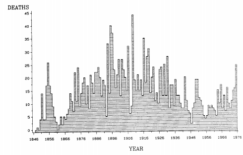 The third empirical test of the model of density dependence in rates of organizational mortality concerns the population of firms publishing news- papers in the San Francisco Bay area (in collaboration with Glenn Carroll). Partial likelihood (PL) is used in much the same manner as just described for the semiconductor firms. Lifetimes are broken