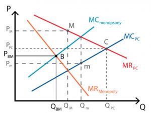 A market characterized by a single seller and a single buyer, otherwise known as a monopoly and a monopsony. Examples of a bilateral monopoly frequently occur in the public sector where a government education employer negotiates with a single teachers’ union on pay and conditions. Bilateral monopoly situations are typically analyzed using the theory of Nash bargaining