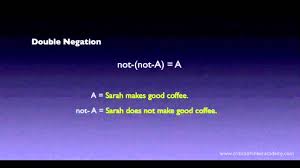 Principle that, for any proposition P, P logically implies not-not-P, and not-not-P logically implies P. Classical logic accepts both these halves of the principle, but intuitionist logic accepts only the first half, and not the second. This is because it accepts the law of contradiction (and so, given P, cannot allow not-P), but rejects