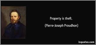 Argument of French anarchist Pierre-Joseph Proudhon (1809-1865). In translation the claim is self-contradictory, since without the concept of property ‘theft’ is meaningless. What Proudhon meant was that purely legal ownership without any of the responsibilities which went with it was a theft from those who actually worked the land, or the raw materials, from which the owners profited. Source: George