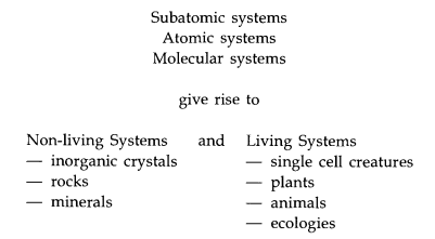 Starting with natural systems, Checkland claims that ‘they are systems which could not be other than they are, given a universe whose patterns and laws are not erratic.’ Their origin is the origin of the universe and the processes of evolution. Within the natural systems there exists an obvious hierarchy from atoms to molecules. Combinations of molecules then give rise to a branched hierarchy.