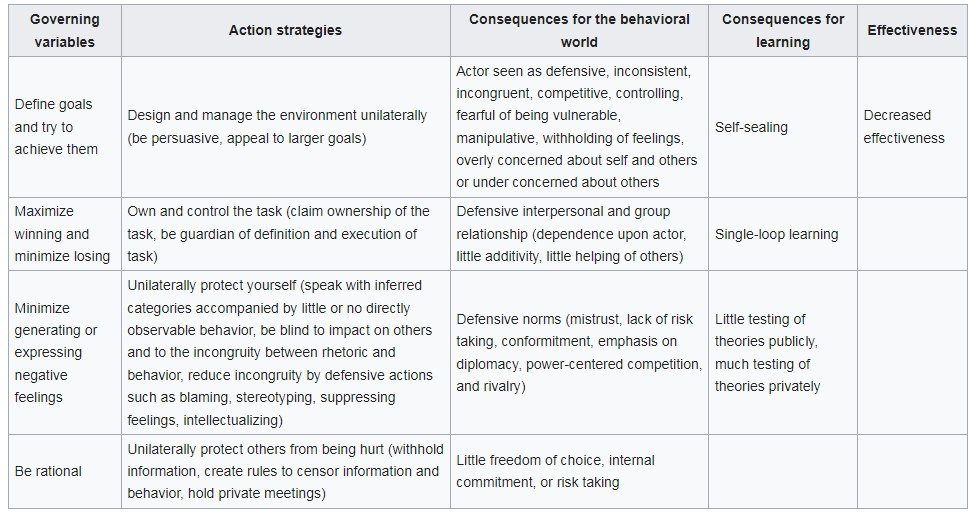 Table 1, Model 1: Theory-In-Use: defensive reasoning