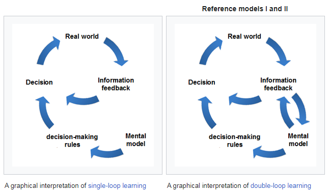 Argyris’ concept of Action Science begins with the study of how human beings design their actions in difficult situations. Human actions are designed to achieve intended consequences and governed by a set of environment variables. How those governing variables are treated in designing actions are the key differences between single-loop learning and double-loop learning. When actions are designed to achieve the intended consequences and to suppress conflict about the governing variables, a single-loop learning cycle usually ensues. On the other hand, when actions are taken, not only to achieve the intended consequences, but also to openly inquire about conflict and to possibly transform the governing variables, both single-loop and double-loop learning cycles usually ensue. (Argyris applies single-loop and double-loop learning concepts not only to personal behaviors but also to organizational behaviors in his models.)