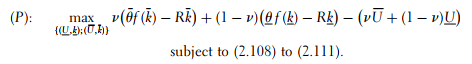 We let the reader check that (2.109) and (2.110) are now the two binding con- straints. As a result, there is no capital distortion with respect to the first-best outcome for the high productivity type and
