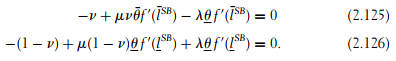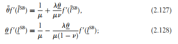 The system of four nonlinear equations (2.127) through (2.130) is quite hard to solve. One reason for this difficulty is that one cannot immediately deduce from (2.127) and (2.128) that l¯SB is smaller and lSB is larger than the corresponding first-best values. Indeed, the marginal utility of income µ changes between both settings.