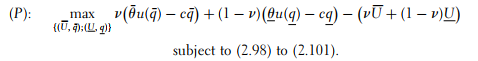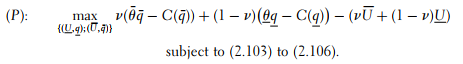Following procedures similar to what we have done so far, only (2.104) and (2.105) are binding constraints. Finally, we find that the high valuation agent receives the first-best quality