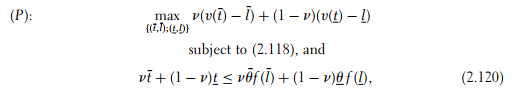 We let the reader check that (2.109) and (2.110) are now the two binding con- straints. As a result, there is no capital distortion with respect to the first-best outcome for the high productivity type and