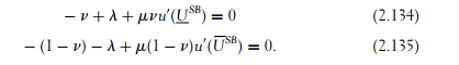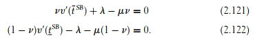 The system of four nonlinear equations (2.127) through (2.130) is quite hard to solve. One reason for this difficulty is that one cannot immediately deduce from (2.127) and (2.128) that l¯SB is smaller and lSB is larger than the corresponding first-best values. Indeed, the marginal utility of income µ changes between both settings.