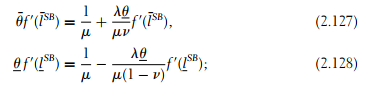 . To satisfy (2.118) and (2.119), it must be that t¯SB ≥ tSB. Moreover, the equality holds only if we have bunching and l¯ = l. For l¯ > l, the inequality is strict. In this case, λ > 0 and the incentive constraint (2.118) is also binding. This allows us to finally express the optimal second-best transfers as