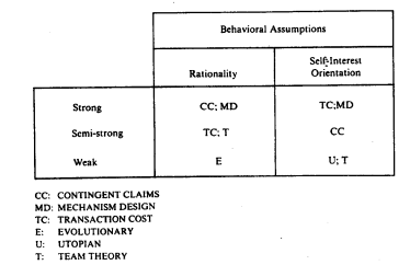 FIGURE 2-1. Behavioral Assumptions of Alternative Approaches to Economic Organization
