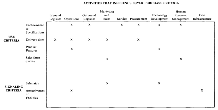 Figure 4-6. Relationship of Value Activities to Buyer Purchase Criteria