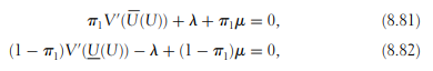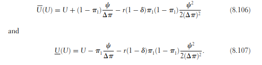 Let us denote the respective multipliers of the constraints (8.79) and (8.80) by h and µ. Assuming the concavity of the value function V (·),17 the optimizations with respect to U¯ and U yield respectively