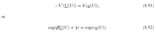 The general discussion above has shown that the constraints (8.79) and (8.80) are both binding. This yields the following expressions of u¯(U ) and u(U ):