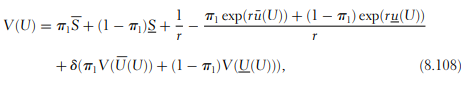 This property is also useful when computing the whole distribution of expected utilities Ui from any period i on. The laws of motion are given by (8.102) and (8.103). Figure 8.4 below explains how this distribution evolves over time.